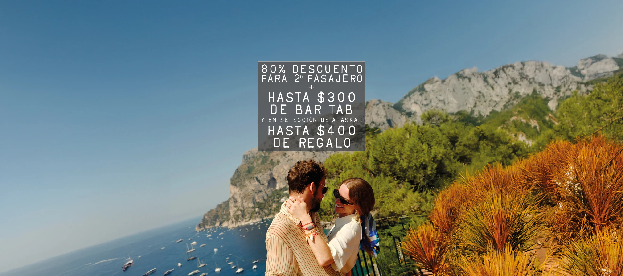 Hasta $400 de Dinero para gastar a bordo: Disponible en cruceros seleccionados por Alaska. Promoción aplicable por cabina reservando en categoría Sea Terrace o Rockstar. Válida en tarifa Base, Essential y Bestprice. No aplicable a reservas en categorías Lock It In, Interior, Sea View ni Mega Rockstar.