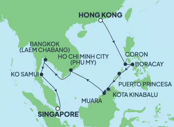 10 ports from Hong Kong to Singapore