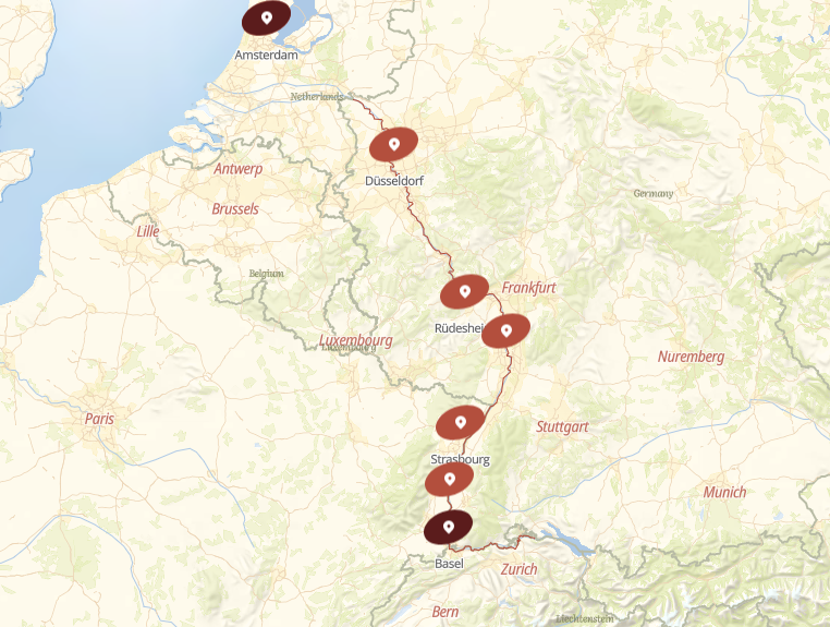 7 ports from Amsterdam to Basel