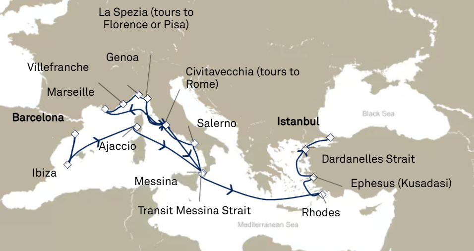 16 ports from Barcelona to Istambul