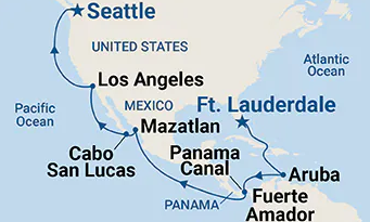 8 ports from Fort Lauderdale (Miami) to Seattle
