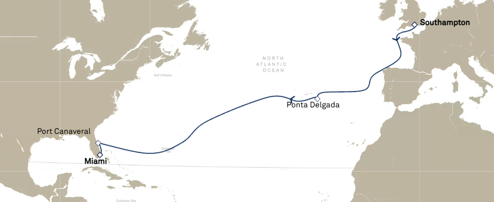 4 ports from Southampton (London) to Miami